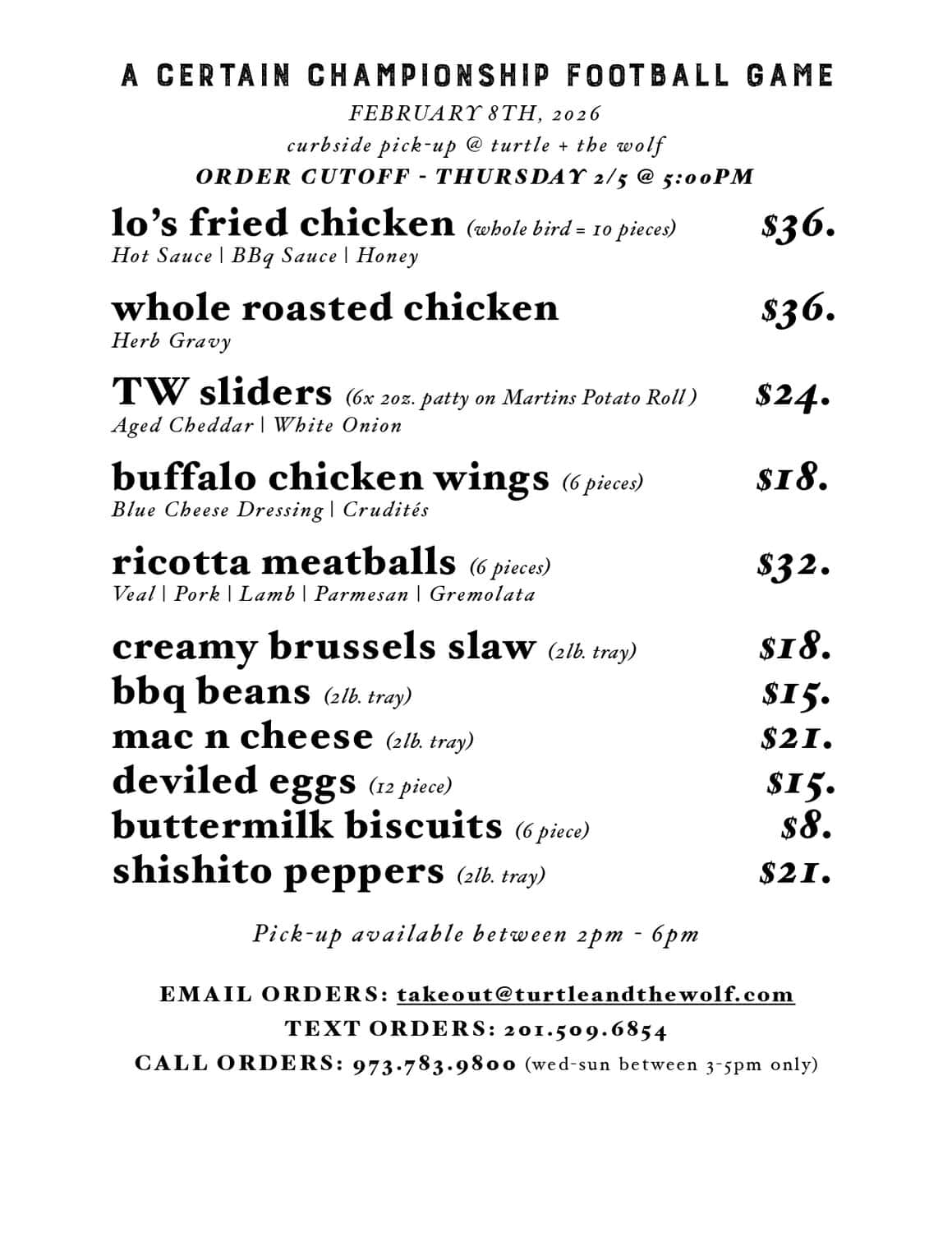 CHECK OUT THE MENU BELOW FOR YOUR TAKEOUT OPTIONS FOR FEBRUARY 8th, 2026.